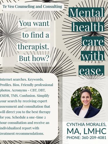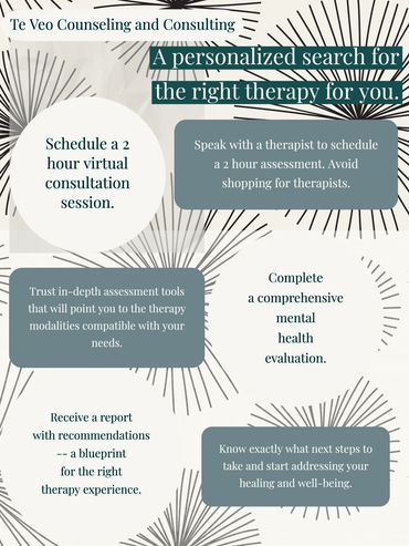 Complete an initial assessment at no cost to you. Finding a therapist is like dating - you want to confirm compatibility before commitment to a long-term relationship. Together, we can help you decide if I am a good fit for you.